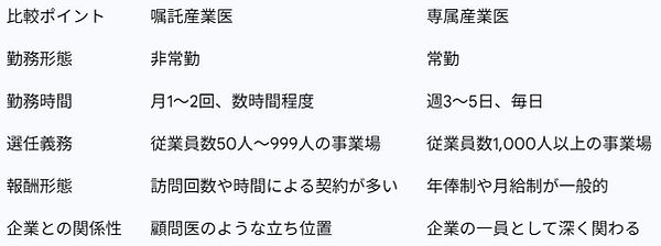 産業医には、嘱託産業医と専属産業医の2種類があります。 どちらも役割は同じですが、その働き方や選任基準には明確な違いがあります。 自社の状況に合わせて最適な選択をするためにも、この違いをしっかり理解しておくことが大切です。